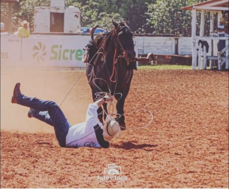 A exibição do prefeito José Paulo Paleari (PP), de Nova Alvorada do Sul, não terminou bem no último sábado durante o 35º Encontro Estadual do Laço Portão Quebrado, realizado de sexta-feira (12) até ontem (14). Ele levou um tombo folclórico ao tentar se exibir para o público participante do evento.