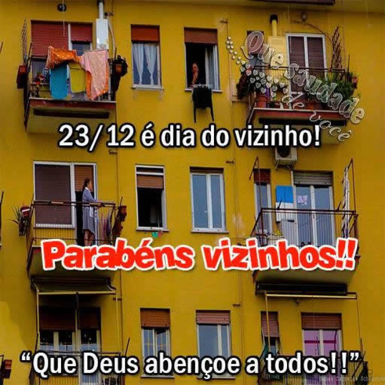 O Dia do Vizinho é comemora anualmente em 23 de dezembro no Brasil.
