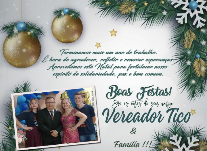 Que neste NATAL as Famílias sintam mais forte ainda o significado da palavra “AMOR”. Que sejamos iluminados pelas luzes da PAZ, da UNIÃO e da SOLIDARIEDADE, transformando os nossos dias, em dias de felicidade.