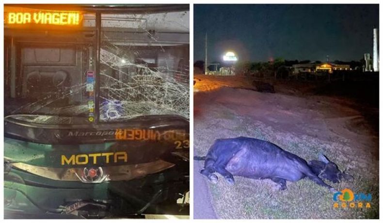 Acidente envolvendo um ônibus e uma carreta, na madrugada deste domingo (4), resultou na morte de quatro búfalos que transitavam , no Km 725 da BR-163, em Coxim, a 266 quilômetros de Campo Grande.