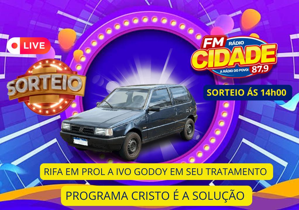 Foi realizado o sorteio da rifa em prol ao tratamento do Sr Ivo Godoy na tarde de hoje na FM CIDADE 87,9 no programa " Cristo é a Solução" que tem como apresentador Pastor Sandro .