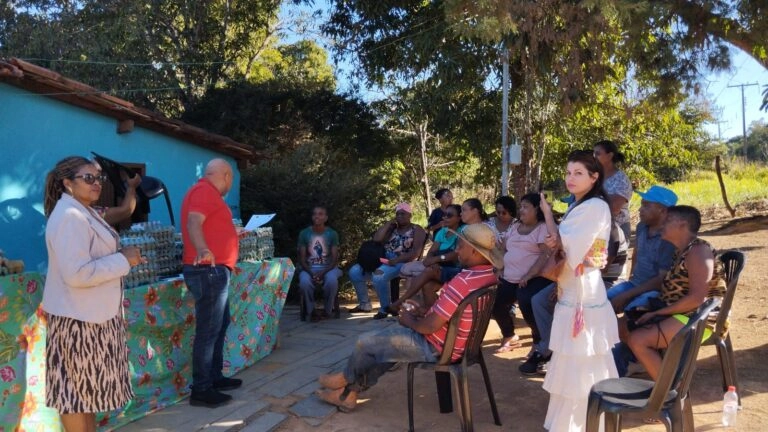 A entrega dos produtos foi feita na sede da Associação do Território Quilombo Mesquita, espaço com mais de 100 anos de história e pertencente aos ancestrais da presidenta Sandra Braga — um lugar carregado de simbolismo e resistência, que representa a continuidade da luta quilombola por dignidade e soberania.
