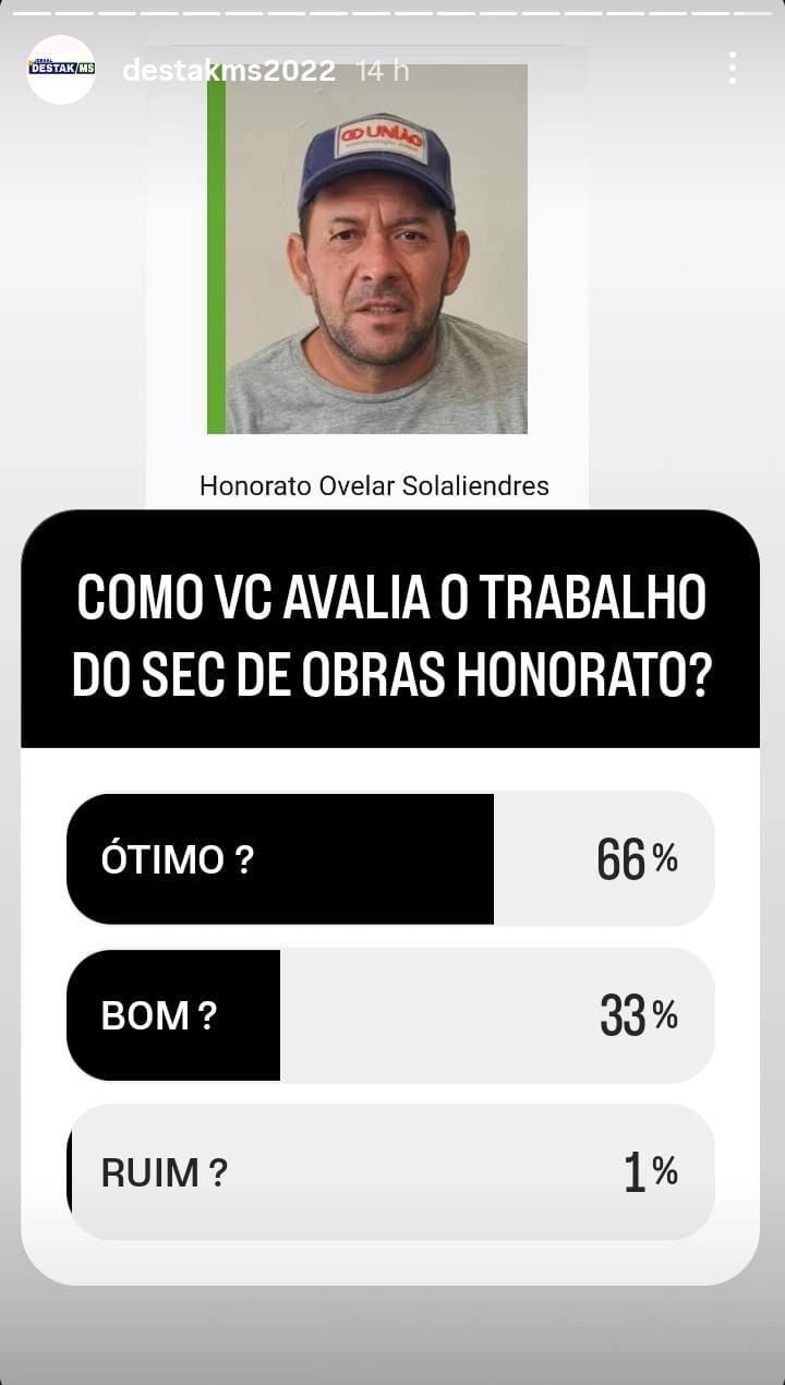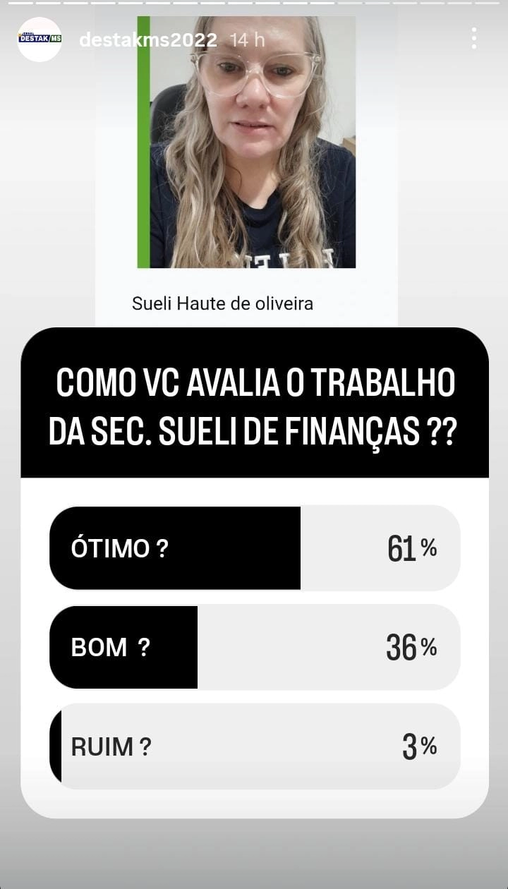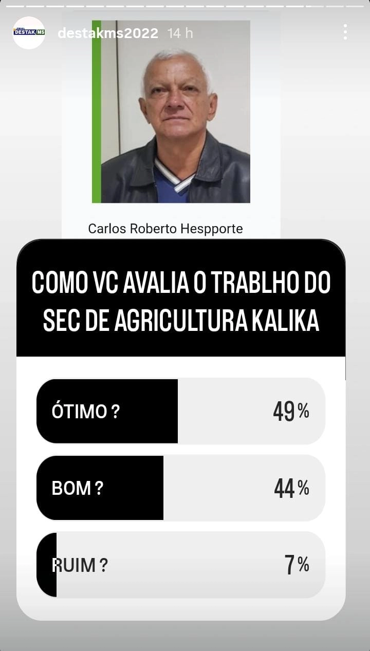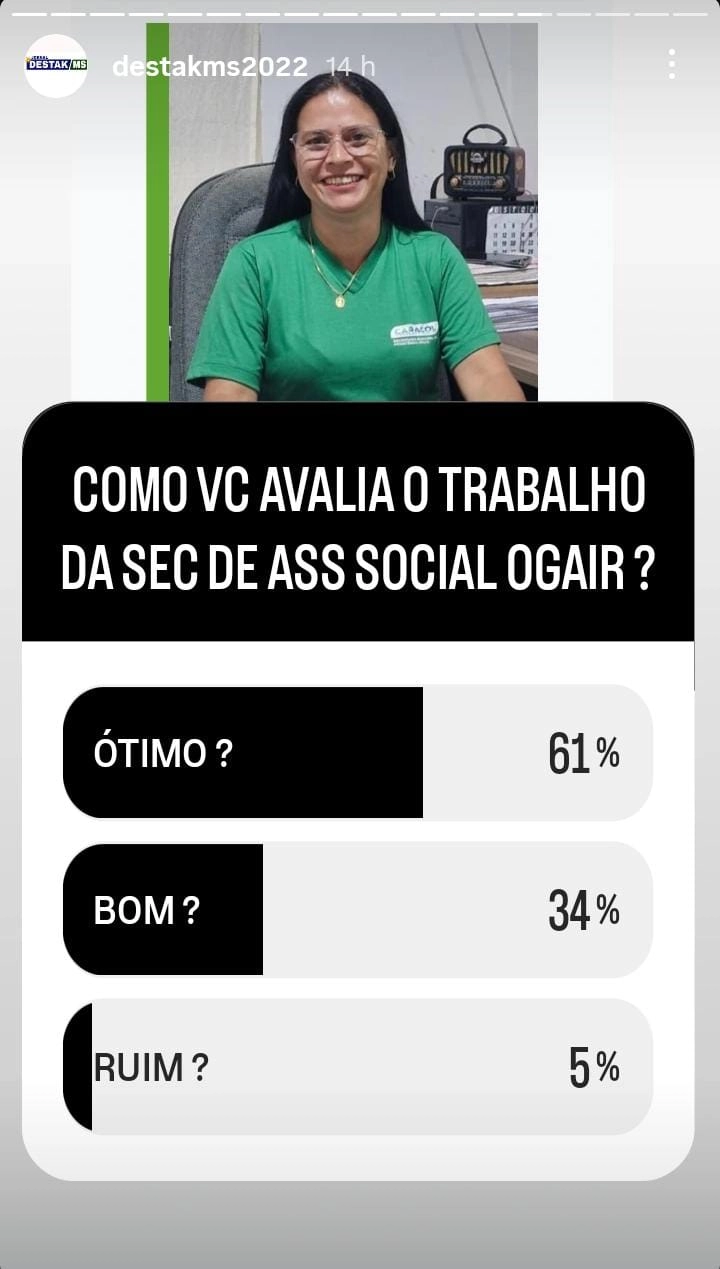 O site e Jornal DESTAK MS realizou uma enquete de avaliação dos secretários municipais de caracol onde foi perguntado como a população avalia cada secretário.