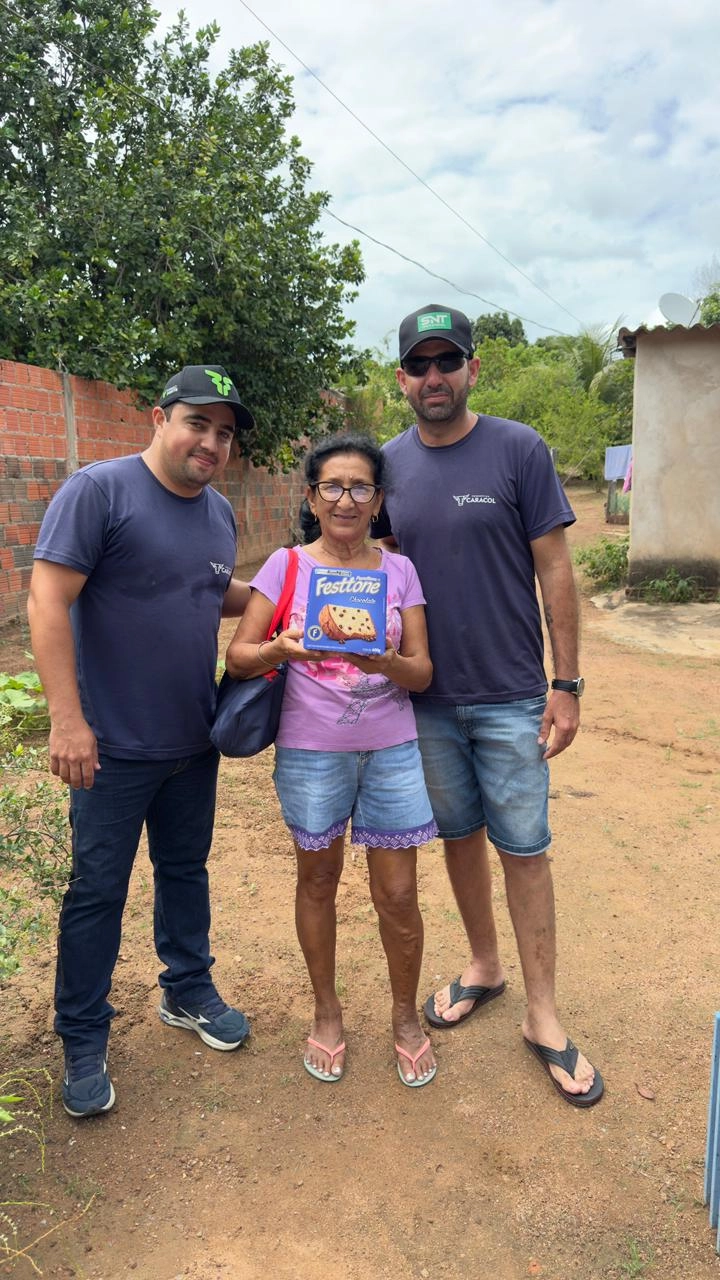 A entrega aconteceu em várias ruas da cidade ,feitas pelos colaboradores do Frigorífico Caracol, Leomar e Gabriel.