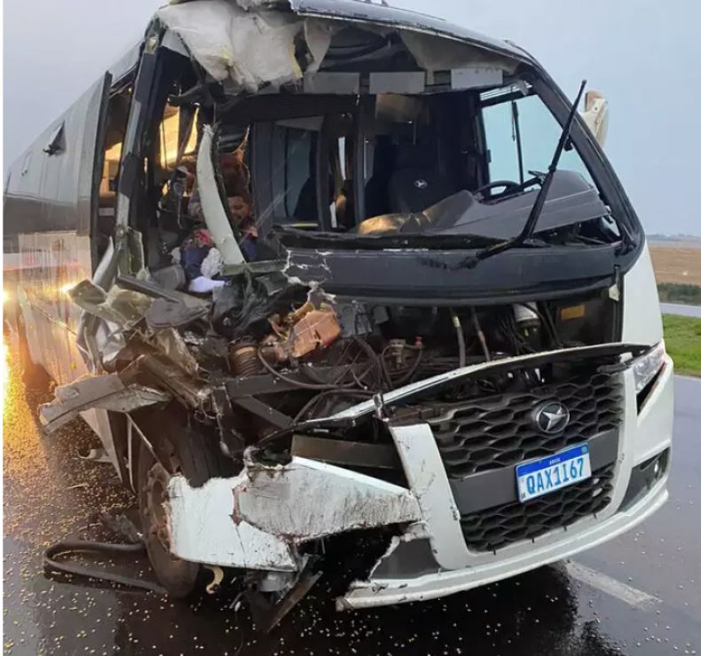 Ônibus de MS bate em caminhão de grãos no Paraná e 6 ficam feridos
